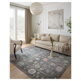Area rugs in the Elysium Collection have a loose and dreamy botanical design with a beautifully faded old-world feel. This collection is power-loomed in Egypt of 100% polyester face.